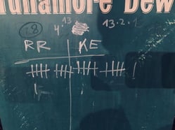 Beim Stand von 0:6 in Satz zwei flogen dann wieder einmal die Kugeln gegen die Ziegelmauer. Lange nicht gesehen, aber gut zu verstehen. Zu groß der Ärger über die vergebene Chance, über das Unglück, die Ungerechtigkeit der Welt. Und nur die echten Sieger kommen da zurück aus dem Loch, in dem sich die Saddams und Osamas verkriechen, weil es keinen anderen Platz mehr für sie gibt auf Gottes Erden. Und dann flogen die Bomben, sprichwörtlich natürlich und 10 Punkte am Stück sollten es werden und da war sie plötzlich wieder die Chance, ERI zum Double-Gewinner 2023 zu machen.