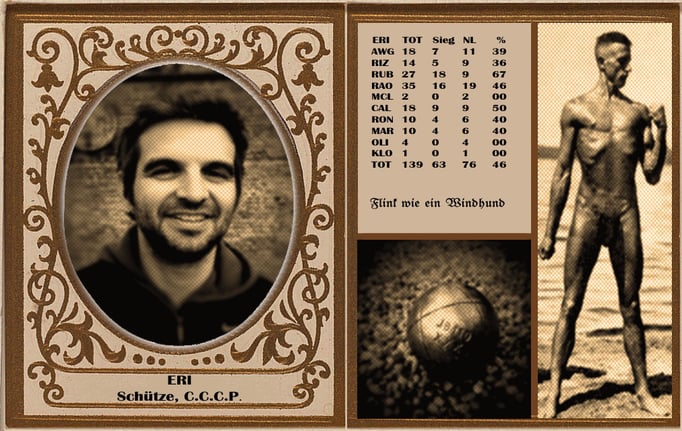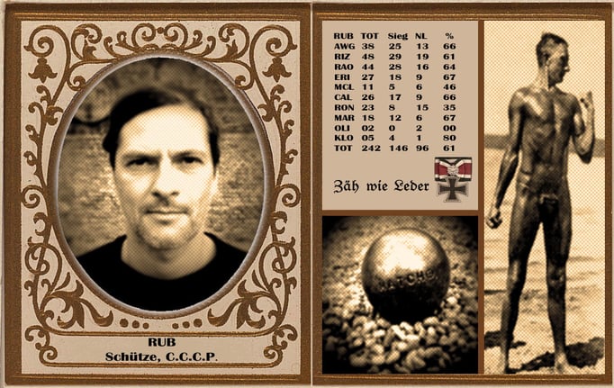 Die TC 2015 sind dem legendären Leni Riefenstahl Petanque Ballett Paris 1940 gewidmet und stehen im Zeichen unserer Pläne zur Eroberung der Welt, die mit dem Einteilungsturnier (für die ö. Petanque-Regionalliga, Anm. d. Red.) am 31.05. ihren Anfang nimmt. Obwohl unser Präsident befürchtet, dass wir damit eher mit den Buben der Teutonia im Keller boulen werden und Olympia nur als Burschenschaft erreichbar ist (und nicht als Nationalteam für Tokio 2020, Anm. d. Red.), hat er die TC freigegeben.